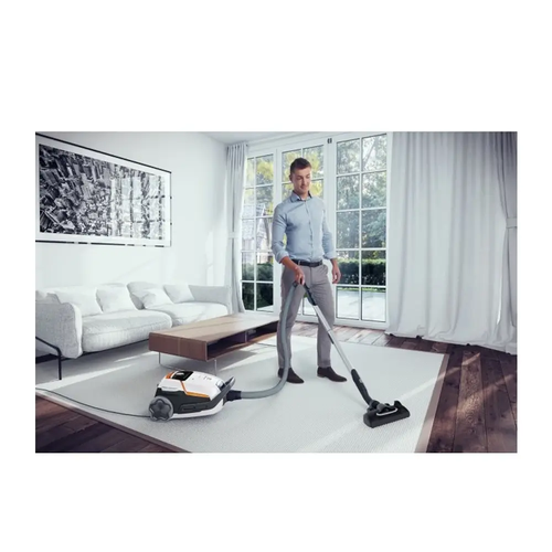 معرفی جاروبرقی الکترولوکس مدل EUOC93IW جاروبرقی الکترولوکس مدل EUOC93IW از سری UltraOne محصولی باکیفیت، قدرتمند با توان 700 وات و قدرت مکش بالا بوده که به خوبی گرد و خاک و ذرات را از روی انواع سطوح جمع آوری می کند و خانه ای تمیز و زیبا را برایتان به ارمغان می آورد. این جاروبرقی از نوع کیسه ای با حجم 5 لیتر بوده که می توانید دفعات زیادی بدون پر شدن سریع کیسه جارو بکشید. کیسه جاروبرقی از نوع باکیفیت s-bag با عملکرد طولانی مدت می باشد. جاروبرقی electrolux euoc93iw به تنظیم دستی قدرت مکش، نازل بسیار کارآمد FlowMotion، دسته راحت AeroPro Classic و لوازم جانبی AeroPro 3-in-1 مجهز شده است. ویژگی های جاروبرقی الکترولوکس ultraone فیلتر قابل شستشوی Hygiene 12 فیلتر بهداشتی و قابل شستشوی Hygiene 12 حتی کوچکترین ذرات موجود در هوای خروجی را تمیز می کند تا بعد از جاروکشی، هوای محیط آلوده و پر از گرد و خاک نباشد. بنابراین وجود این فیلتر برای کودکان، سالخوردگان، بیماران ریوی، آسم و افراد دارای آلرژی بسیار ایده آل است. هر چند وقت یکبار می توانید این فیلتر را شسته و تمیز کنید. بی صدا با فناوری Silent Air با توسعه جدید مهندسین شرکت Electrolux در این محصول از فناوری Silent Air استفاده کرده اند تا بتوانید بدون ایجاد مزاحمت برای کسی حتی در حالی که دیگر اعضا تلویزیون می بینند یا در حال استراحت هستند، جاروبرقی بکشید. به لطف لوله 36 میلی متری AeroPro با جریان هوای قوی و سیستم کاملا سربسته و نازل FlowMotion، کم صدا و در عین حال بسیار کارآمد، این جاربرقی تنها صدای 66 دسی بل را تولید می کند. شعاع عملکرد سیم برق 9 متری و لوله تلسکوپی قابل تنظیم جاروبرقی الکترولوکس ultraone تا 12 متر شعاع عملکرد را فراهم می کند که حتی برای جارو کشیدن اتاق های بزرگ کافی است. عملکرد درجه یک با جریان هوای بسیار بهینه راز جمع آوری گرد و غبار عالی نه تنها یک موتور قدرتمند، بلکه جریان هوای بالا و نازل کارآمد AeroPro™ Silent است. از نازل تا خروجی، جریان هوا در جاروبرقی بسیار کارآمد آب بندی و بهینه شده است. طراحی ظاهری بدنه جاروبرقی الکترولوکس مدل EUOC93IW با طراحی خاص و شیک خود به رنگ سفید با رگه های نارنجی نظر هر سخت پسندی را به خود جلب می کند. ابعاد جارو برقی عرض 307 میلی متر، ارتفاع 255 میلی متر، عمق 502 میلی متر و وزن خالص آن حدود 7.4 کیلوگرم می باشد. این دستگاه به دلیل وزن سبک و دارا بودن 3 چرخ روان، مانور عالی برای تمیز کردن را فراهم می کند. 2 چرخ بزرگ پلاستیکی و 1 چرخ کوچک با امکان چرخش 360 درجه به راحتی و روان روی سطوح حرکت می کنند تا با جا به جایی دستگاه حین جاروکشی مشکلی نداشته باشید. در قسمت جلوی بدنه فیلتر قرار دارد که جهت تمیز کردن و یا تعویض فیلتر، بدون دردسر به آسانی باز می شود. برروی بدنه دکمه چرخشی برای تنظیم قدرت مکش تعبیه شده تا با توجه به نوع سطح و میزان گرد و خاک و ذرات، آن را تنظیم کنید. لوله خرطومی این مدل باکیفیت و منعطف از جنس پلاستیک و لوله خرطومی قابل تنظیم، فلزی می باشد. برروی بدنه یک دسته ارگونومیک طراحی شده که در حمل و جا به جایی جاروبرقی بسیار به درد می خورد. سیستم پارک لوله دیگر مزیت این محصول است و زمانی که از جاروبرقی استفاده نمی کنید، می توانید لوله را روی بدنه اش قرار دهید تا فضای کمتری اشغال کند. لوازم همراه با نازل 3 در 1 انواع سطوح را تمیز کنید. هر زمان که به هر نازل نیاز داشتید به راحتی بین آنها جابه جا شوید و پس از اتمام کار، آن ها را درون محفظه مخصوص قرار دهید تا همیشه در دسترس تان باشد. سری گردگیری برای سطوح سخت سری مربوط به پارچه ها نازل شکاف برای فضاهای باریک