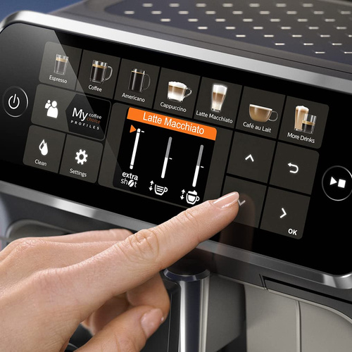 معرفی اسپرسوساز فیلیپس EP5447 اسپرسوساز فیلیپس EP5447 از جمله محصولات مهمی می باشد که می توانید به وسیله ی آن در خانه به تهیه ی نوشیدنی های متنوع و مختلف با کیفیتی بسیار بالا بپردازید. البته از سرعت بالای این دستگاه نیز نمی توان گذشت زیرا با سرعت بسیار بالایی که دارد، نوشیدنی های مختلف را در سریع ترین زمان ممکن برای شما آماده خواهد کرد. دارای یک عدد موتور پر قدرت و پر سرعت می باشد که توان مصرفی این موتور برابر با 1500 وات می باشد. البته این توان مصرفی بالا به هیچ وجه موجب مصرف بیش از اندازه ی انرژی برق نخواهد شد. و این اسپرسو ساز محصولی کاملا بهینه و کم مصرف می باشد. این محصول تمام اتوماتیک می باشد و به همین منظور استفاده از آن بسیار آسان است و میزان بخار آن نیز به شکل کاملا اتوماتیک تنظیم می شود. یک مخزن آب با ظرفیت 1.8 لیتر در این دستگاه تعبیه شده است که جنسی از پلاستیک دارد و کاملا مقاوم است. البته این مخزن قابلیت جدا شدن را نیز دارا می باشد و به آسانی قابل جدا سازی و نصب مجدد است. یک عدد مخزن شیر نیز در این اسپرسو ساز هست که کف شیر در این مخزن آماده می شود. از کف شیر برای دیزاین نیز می توان بهره برد. خصوصیات اسپرسوساز فیلیپس EP5447 نوشیدنی های قابل تهیه: شما می توانید به کمک این دستگاه، نوشیدنی های متنوع مختلفی از جمله: اسپرسو، قهوه، آمریکانو، کاپوچینو، لاته ماکیاتو، فلت وایت، کافه لاته، کافه اوله، کافه کرما، ریسترتو، اسپرسو لانگ، کف شیر و… را تهیه کنید. پنل کنترل: نوع کنترل این دستگاه به وسیله ی پنل لمسی انجام می پذیرد. که این پنل لمسی هم سرعت عمل را در انجام تنظیمات بالا خواهد برد. و هم جلوه ای بسیار شیک و خاص به این اسپرسو ساز بخشیده است.